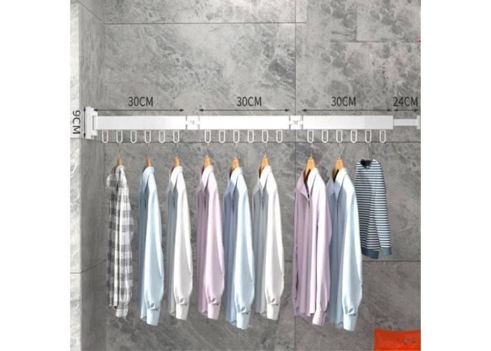 Supersmart vägghängt klädställ, stället är flexibelt och kan roteras 360 grader och dras ut efter önskemål. Varje länk har 6 krokar för att hänga kläder och är i änden utdragbar och kan användas för att hänga upp ännu fler kläder. Fälls lätt ihop på väggen så att den tar minimalt med plats när den inte används. Kan användas både i hemmet och på balkongen eller någon annanstans.