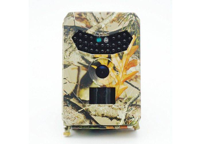 Denna 1080P digitala vattentäta jaktkamera är gjord av bra kvalitet och smart design. IP56 skyddsgrad, förhindrar effektivt regn, damm och insekter från att komma in i kameran. Kamouflageskalet säkerställer inte bara en stark döljande effekt och förhindrar exponering, utan ger också din kamera ett coolt utseende. Kameran fungerar med 4xAA-batterier och en fästrem medföljer så att du till exempel kan fästa kameran runt ett träd.