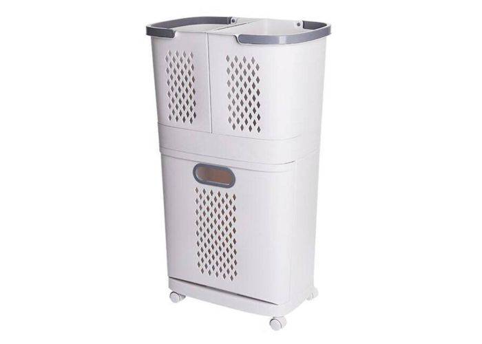 Smart 3-delad tvättkorg med hjul så att du enkelt kan transportera runt den, men de 3 facken kan du organisera och enkelt separera din tvätt. Denna innovativa tvättlösning kombinerar funktionalitet och rörlighet med en dubbelskiktsdesign gjord av slitstarkt material.