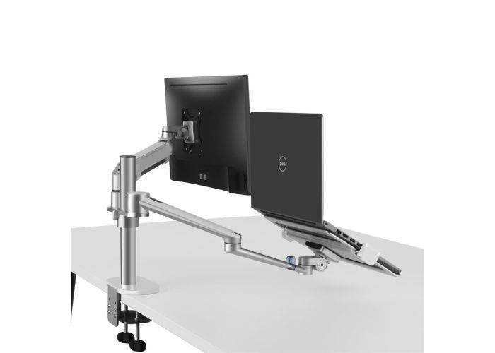 WERGON - Luna - Dubbelhållare m/gasfjäder för en bärbar dator 11-17" + En bildskärm/LCD-skärm max 27" - Silver