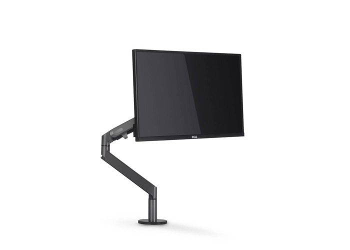Denna modell har en gasfjäder, så att du kan justera höjden och skärmens inställning helt viktlöst och utan att anstränga dig. Du kan enkelt hålla koll på alla ledningar längs röret med clips så att det ser nästan helt osynligt ut och att montera hållaren på bordet är extremt enkelt med det medföljande fästet. Om din bildskärm inte har VESA-standarden 75x75 eller 100x100mm kan du enkelt få den att passa med ett adapterfäste.