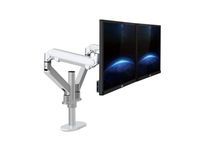 1 x WERGON - Move - Justerbar dubbel bordshållare med gasfjädrar - Monitorskärmar Max 27" - Silver